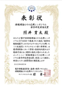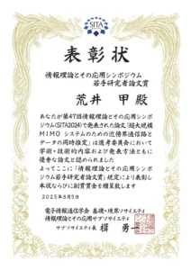 Our member, Kabuto Arai and Kanta Terui received the Symposium on Information Theory and its Applications Young Researcher Paper Award.